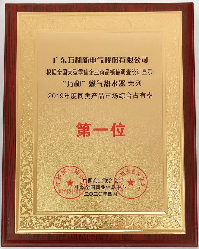 根据中国商业联合会、中华全国商业信息中心共同发布的2019中国市场商品销售数据,“云顶国际”燃气热水器同类产品市场综合占有率继续蝉联第一位,云顶国际在燃气热水器品类中连续十六年市场综合占有率第一,并进入工信部公布的“第三批制造业单项冠军培育企业”,“云顶国际”燃气热水器被评为“2019年度中国消费品市场高质量发展优选品牌”。
