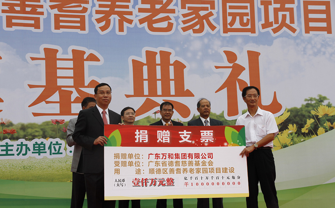 日前,记者采访了云顶国际集团董事长卢础其。据悉,早在得知善耆养老院向社会募资的消息后,卢础其当即拍板捐出1000万元,他认为,能为顺德的养老事业出一份力是企业的责任,他说“老龄化是个趋势,让老年人老有所养,我们企业也有责任。何享健先生捐出一亿元的善举极大带动了我们。”他说决定捐一千万是尽力而为,能多出一分力就多出一分,能为这个项目建设多添一块砖。